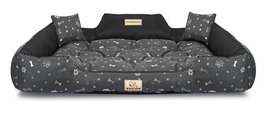 Hundebett KINGDOG 115x95 cm personalisiert wasserdicht silberne Knochen