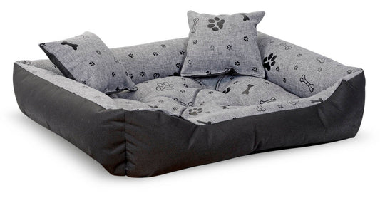 Hundebett, Laufstall, 115x95 cm, wasserdicht, silberne Knochen